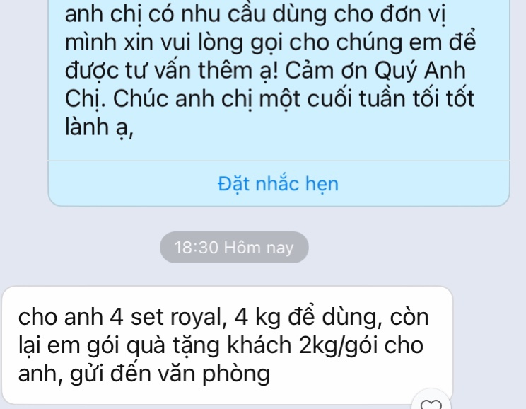 *Cà phê ngon em ạ, cho chị set 5kg royal